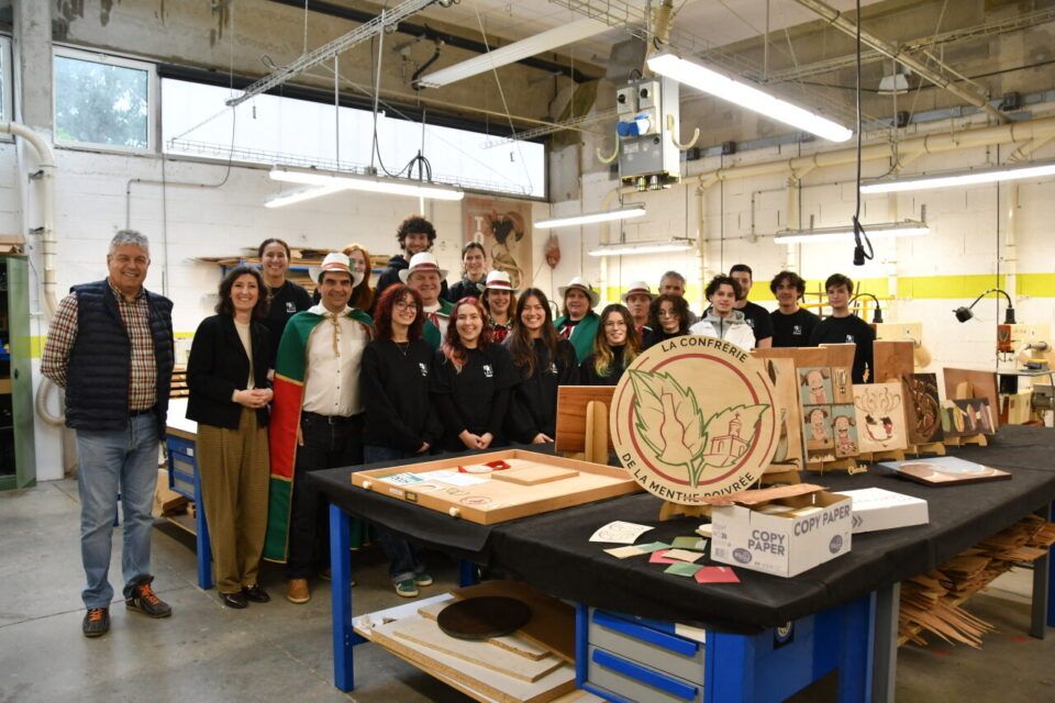 Cette confrérie fait appel aux élèves du lycée des métiers du bois de Revel pour créer son logo en marqueterie